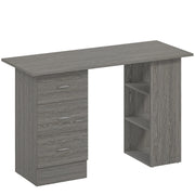 HOMCOM Computer Desk, Writing Table, PC Workstation with 3 Storage Shelves and Drawers, Silver Handle, for Home Office, Grey - Grey