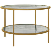HOMCOM Round Coffee Table with Storage, 2-Tier Tempered Glass Coffee Table with Steel Frame for Living Room, Gold Tone - Gold Tone