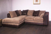 Hannah corner sofa is Hard-wearing and soft corduroy upholstery with bonded leather to give this large corner sofa an inviting texture. Ideal for a busy living space, this sofa can seat up to four people and has a robust wooden construction with a foam filling. Scatter cushions enhance the comfort on offer, while web suspension gives this sofa the firm support it needs. Assembly is required.