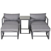 Outsunny 5 Piece Garden Aluminium Conversation Sofa Set Patio Furniture Set Outdoor 2 Sofas 2 Footstools End Table with Cushions - Grey