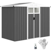 Outsunny 8 x 4 ft Metal Garden Shed, Garden Storage Shed with Window, 4 Vents and Lockable Door, Waterproof Galvanised Steel Tool Storage Shed, Dark Grey - Dark Grey
