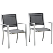 Outsunny Garden Chairs Set Of 2 Outdoor Chairs with Steel Frame Texteline Seats for Dining Patio Balcony Grey and Black - Grey