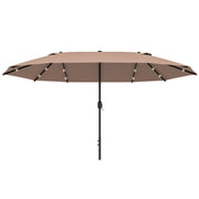 Outsunny Garden Parasol 4.4m Double-Sided Sun Umbrella Patio Parasol LED Solar Lights Khaki - Khaki