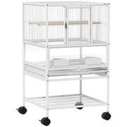 PawHut Bird Cage with Rolling Stand, Acrylic Viewing Panels, Storage Shelf, for Budgie, Parakeet, 48 x 46 x 83 cm - White