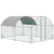 PawHut Walk In Chicken Run Galvanised Chicken Coop Hen Poultry House Cage Pet Playpen Garden with Water-Resist Cover, 2.8 x 3.8 x 2m - Silver