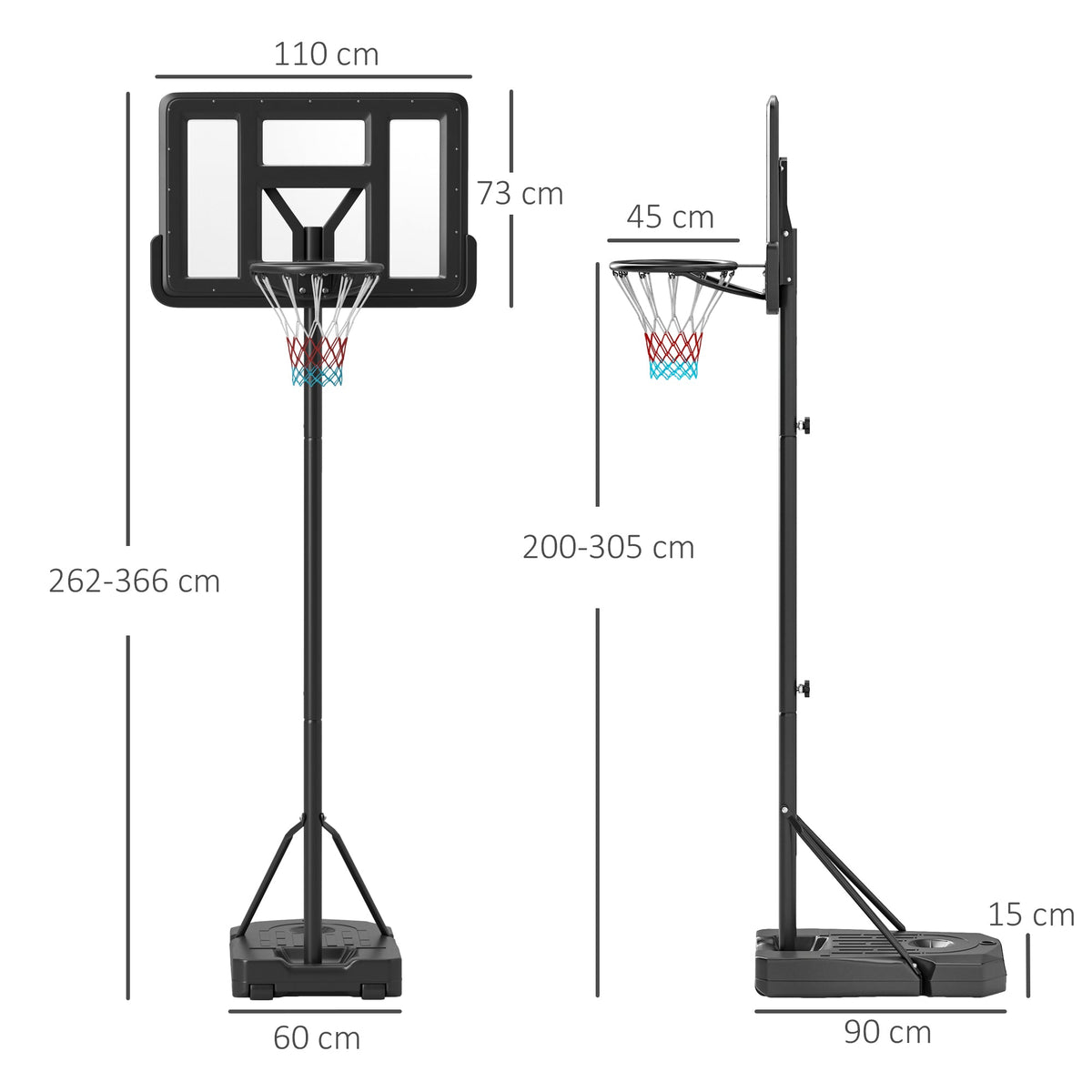 SPORTNOW Height Adjustable Basketball Stand Net Set System, Freestanding Basketball Hoop and Stand w/ Wheels, 200-305cm - Black - Black