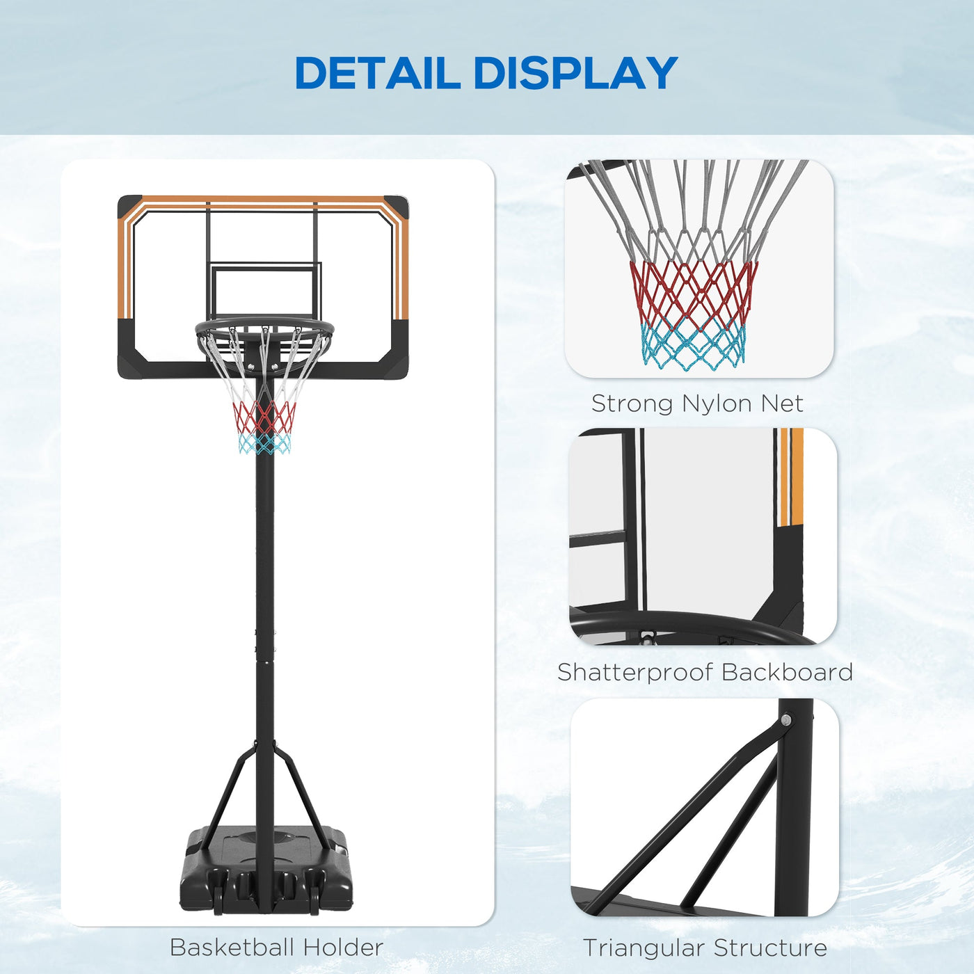 SPORTNOW Height Adjustable Basketball Stand Net Set System, Freestanding Basketball Hoop and Stand with Wheels, 182-213cm - Black - Black