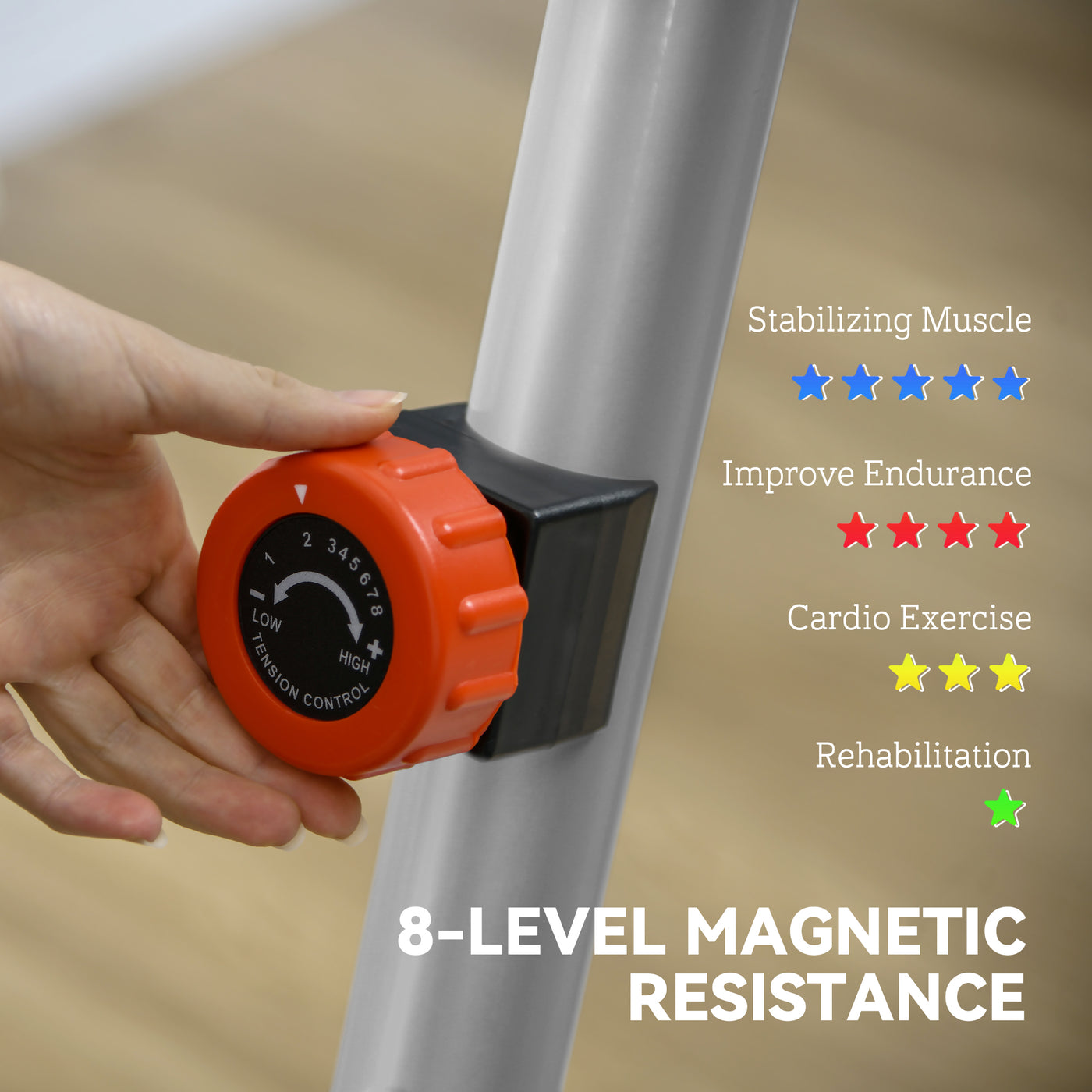 Stay active at home with the SPORTNOW exercise bike, offering eight levels of magnetic resistance for a silent, customised workout, suitable for all fitness levels. The seat adjusts to eight different heights for a good fit. Track your progress on the LCD monitor, displaying speed, time, calories burned, distance and heart rate. Brilliant for your home fitness routines, this stationary bike fits seamlessly into your space, ensuring an engaging exercise session every time.