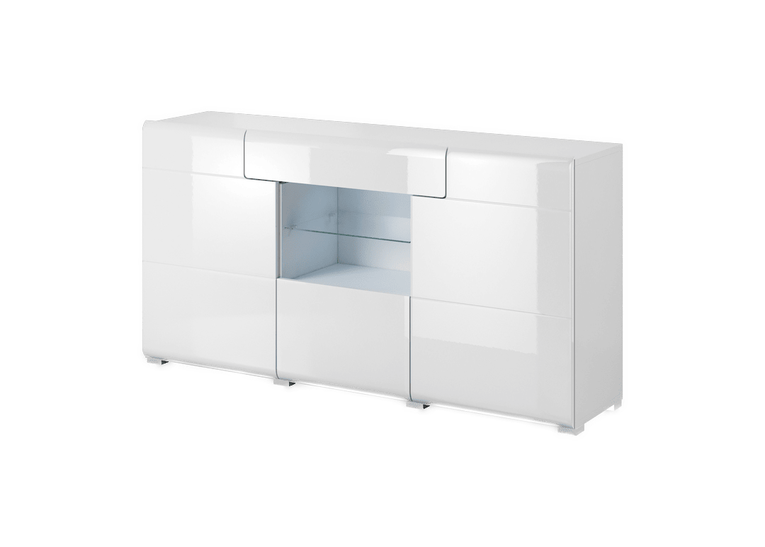 The Toledo 26 is a stylish sideboard cabinet that impresses with its high-quality craftsmanship and combines three hinged doors, one glass shelf and one drawer for storage. Available in two different colours - white or grey matt with San Remo Oak veneer, it will effortlessly blend in any modern or contemporary decor. The soft lines and subtle interplay of shadow and light make this unit stand out in any room.