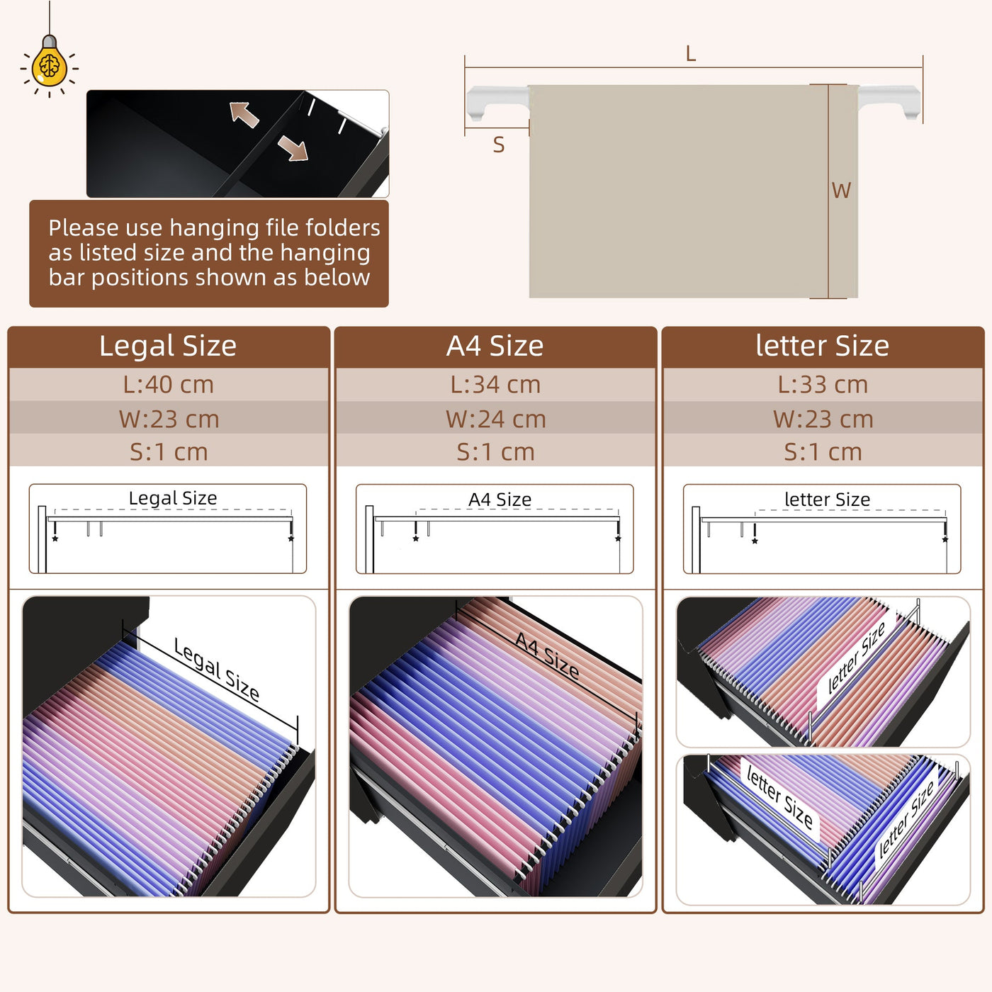 Vinsetto 2-Drawer Vertical Filing Cabinet with Lock and 5 Wheels, Steel Mobile File Cabinet, for A4, Legal and Letter Size, Pre-Assembled Body, Black - Black