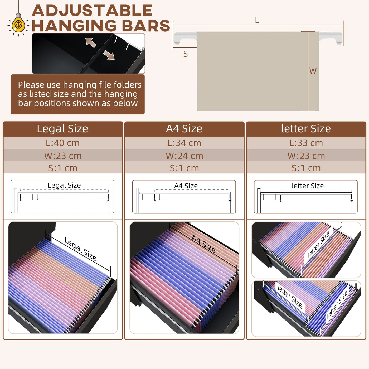 Vinsetto 3-Drawer Vertical Filing Cabinet with Pencil Tray, Lock and 5 Wheels, Steel Mobile File Cabinet, for A4, Legal and Letter Size, Pre-Assembled Body, Black - Black