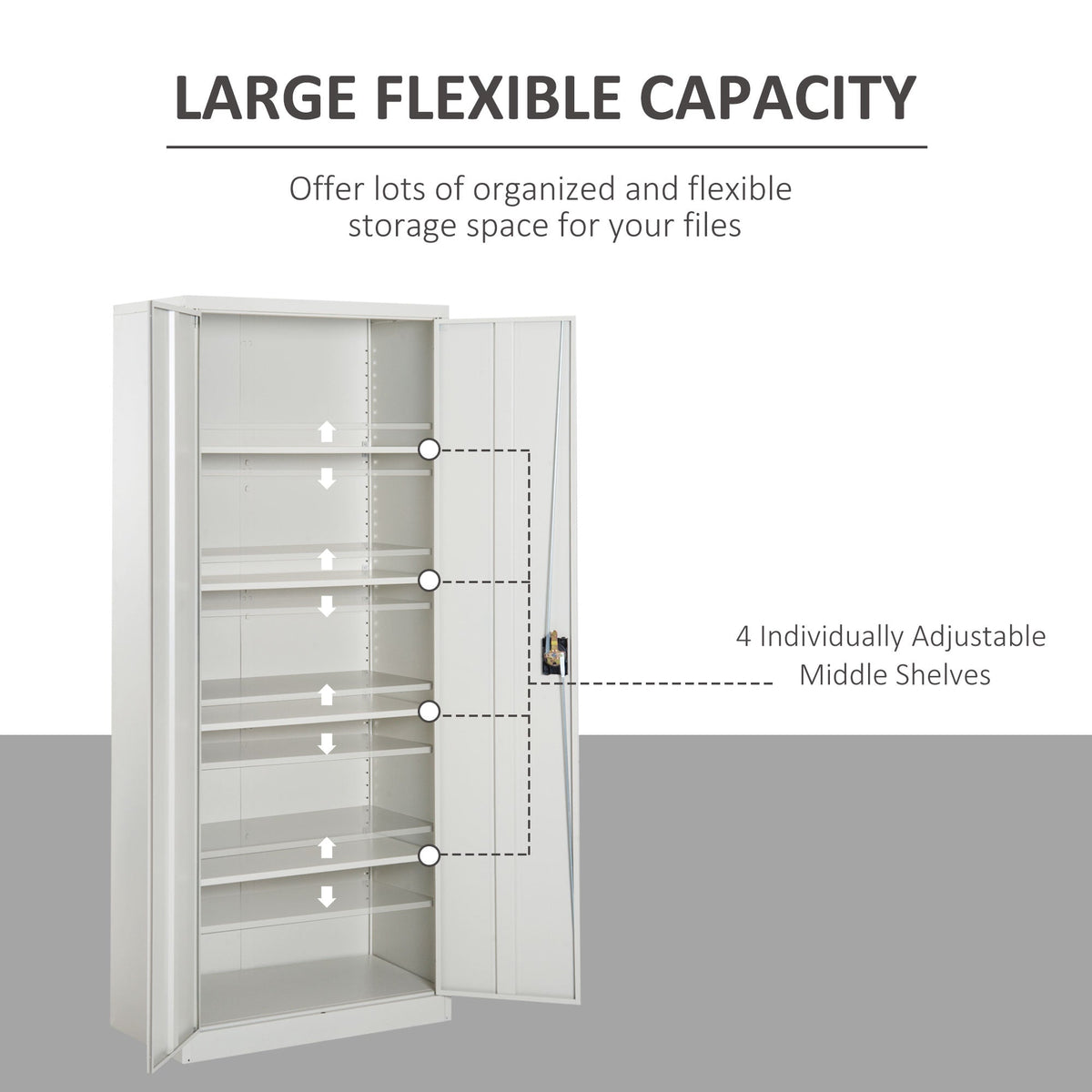 Vinsetto Cool Rolled Steel Tall Office Lockable Filing Cabinet 2 Doors 4 Internal Adjustable Shelves Bookcase Cabinet Storage Unit 80 L x 40 W x 184 cm - Cream White