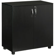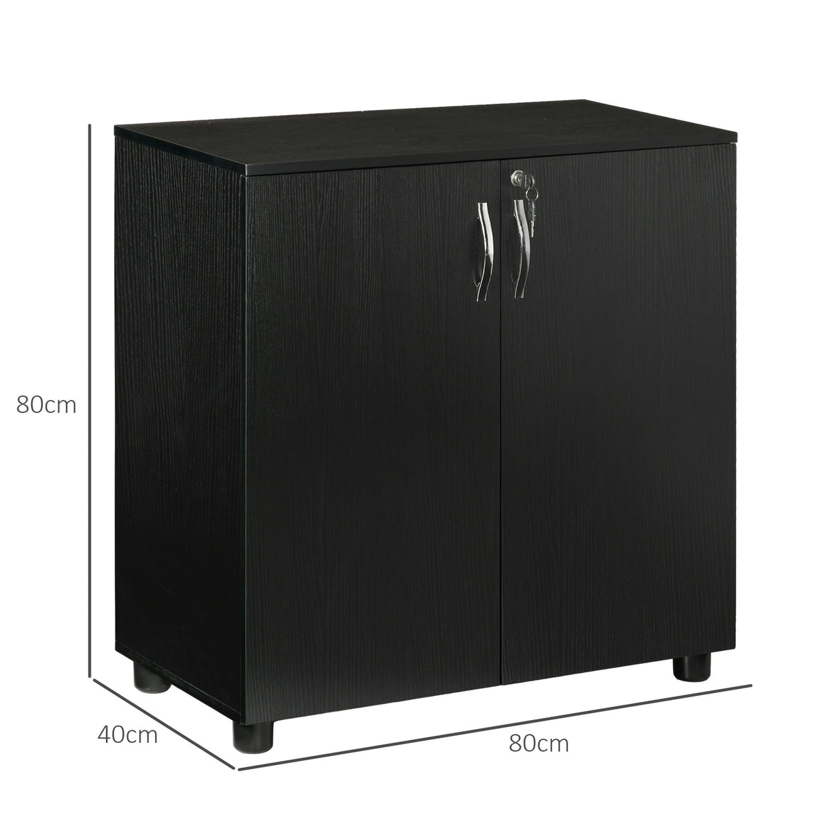 Keep the office organised and the area looking beautiful with this Vinsetto black storage cabinet. With two hinged doors for easy access, inside a longline shelf sits to create two tiers for organisation of your files and papers. Made from particle board, this piece is tough and reliable for everyday use. It's finished with feet to protect your floor and a lock for security. Comes with two keys.
