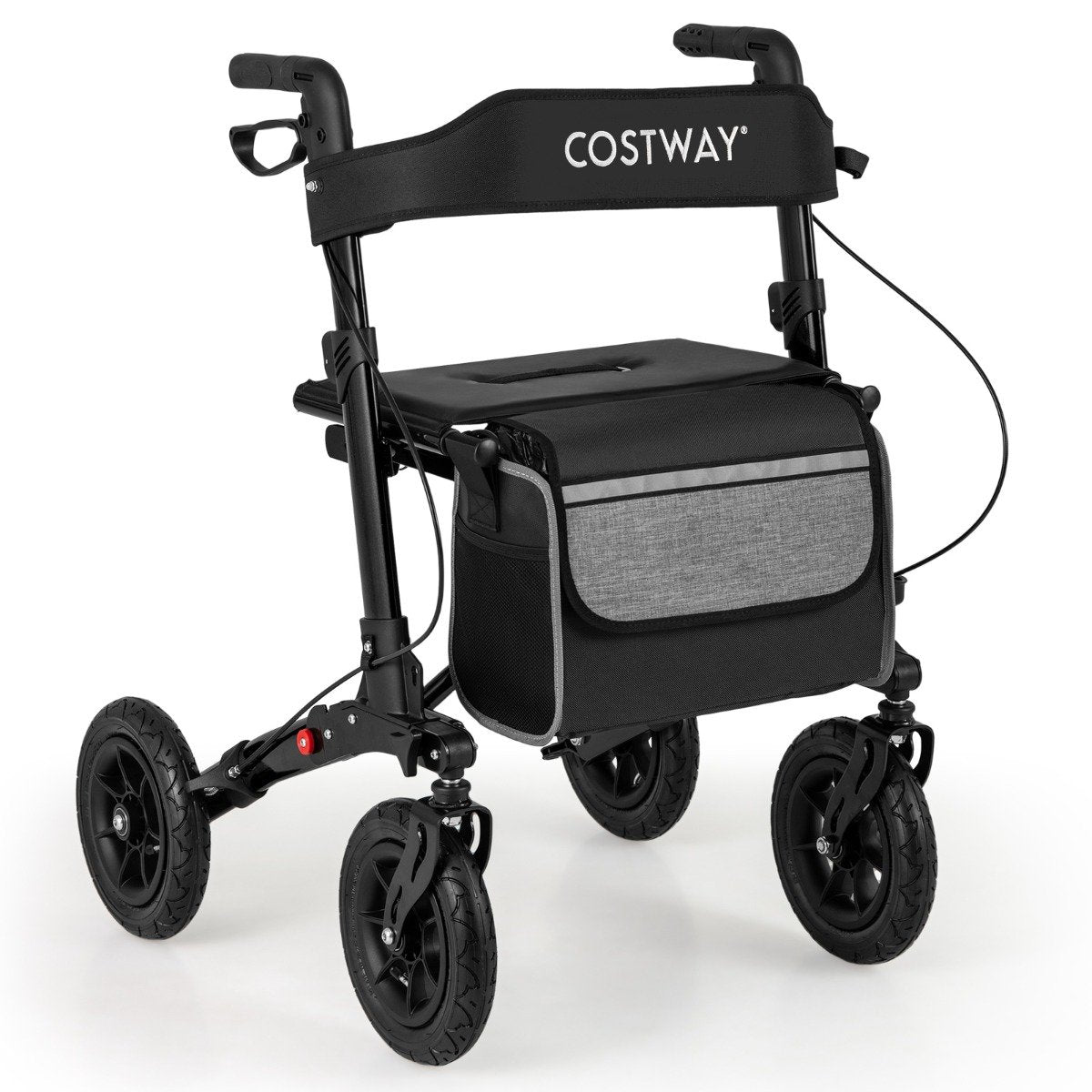 This walker is built with a lightweight yet robust aluminum structure, featuring a unique folding mechanism for easy storage and transport. The all-terrain pneumatic tires ensure smooth and silent rolling indoors and outdoors, while the adjustable handle height caters to various users. Offering a versatile braking system for control and safety, and designed for comfort with a backrest and wide seat, this rollator walker provides seniors with independence and a pleasant walking experience. Bullet Point:Stable and Foldable Design: Equipped with a lightweight yet sturdy aluminum structure, this rolling walker can support up to 140 kg. It features a unique folding mechanism where both the front and rear wheels fold, significantly reducing its size for easy storage and transport. Folded dimension: 59 cm x 36 cm x 44 cm (L x W x H). 23 CM All Terrain Pneumatic Tires: Whether indoors or outdoors, the anti-vibration pneumatic tires offer silent rolling on various types of terrain, such as wooden floor, brick road, asphalt road, cement road, etc. The universal front wheels ensure flexible operation. Adjustable Handle Height: This rollator features a 7-level adjustable height measuring from 81.5 cm to 97 cm, catering to the specific needs of various heights. The easy-to-adjust mechanism makes it effortless and quick to adjust. Easy Control, Enhanced Safety: Equipped with a versatile braking system that includes options for free movement, slow-down, or a secure park setting, this rollator walker offers exceptional control and safety, allowing users to move at their own pace with confidence. Enhanced Comfort for Seniors: This folding walker is designed to provide seniors with superior comfort and independence, equipped with a comfy backrest and wide seat. It is perfect for those who need a short rest between walks, ensuring a pleasant and secure experience.