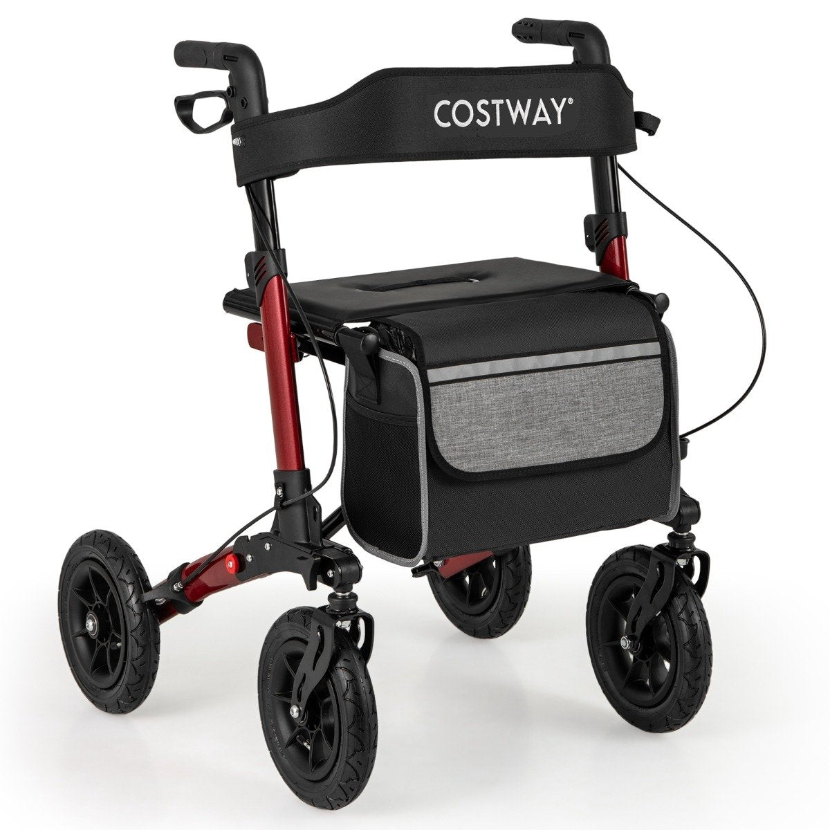 Walker for Seniors with Seat Folding Rollator Walker with Pneumatic Tires-Red
