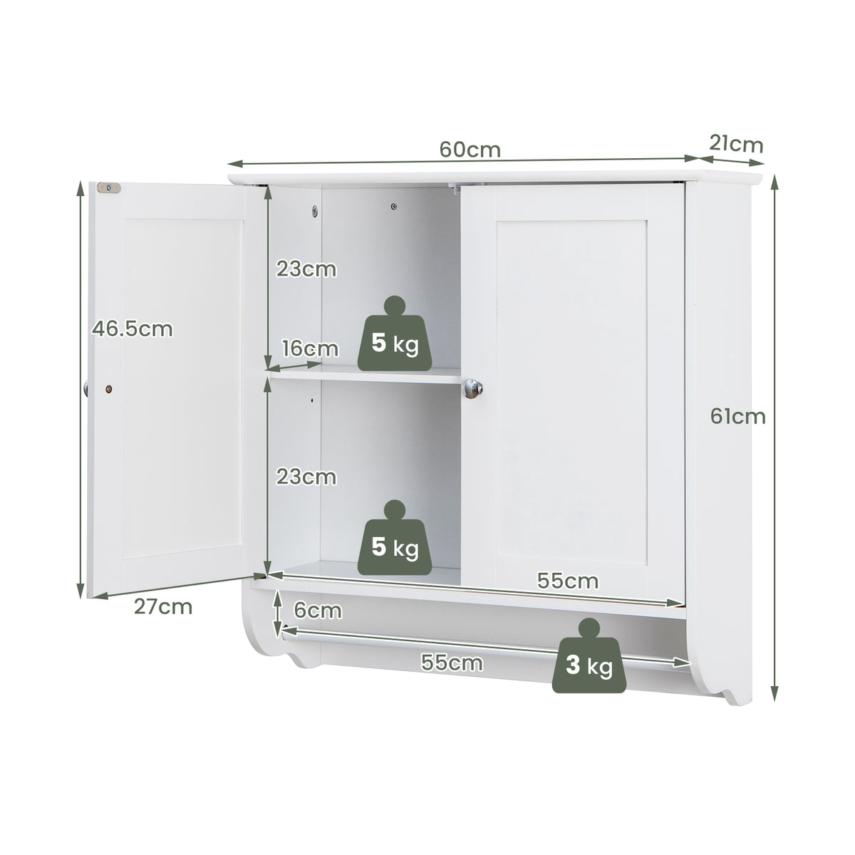 Wall Mounted Bathroom Cabinet with Adjustable Shelf-White