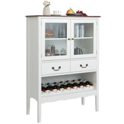 Wooden Kitchen Sideboard with Wine Rack 2 Glass Doors and Drawers-White