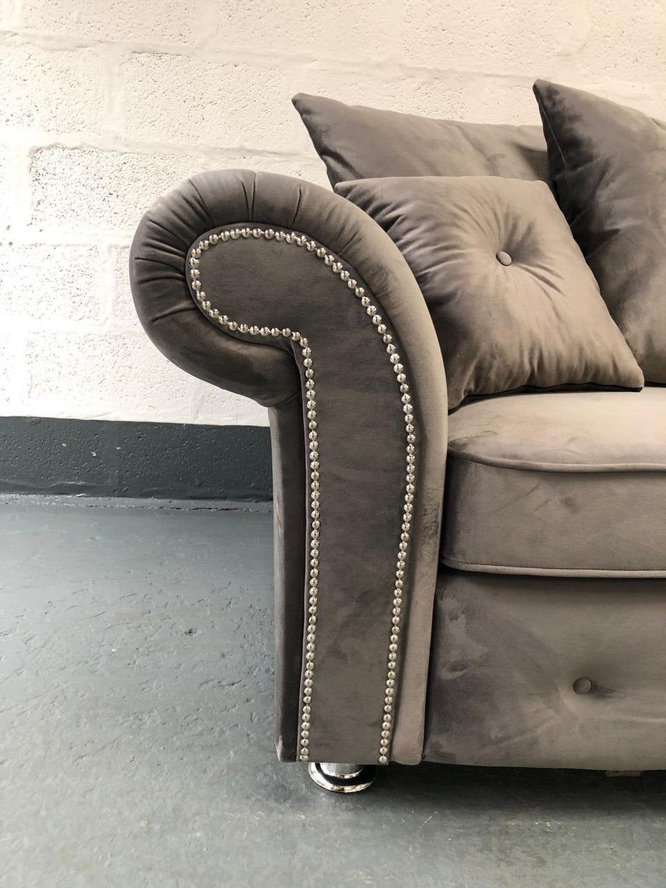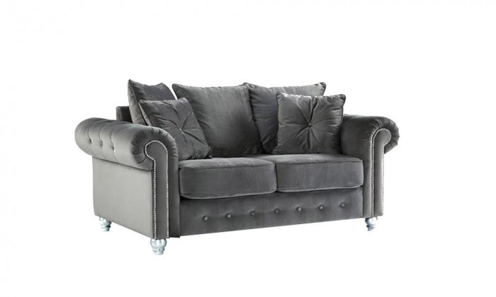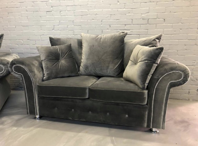 Zoey Plush 2 Seater sofa Grey-Button Arms