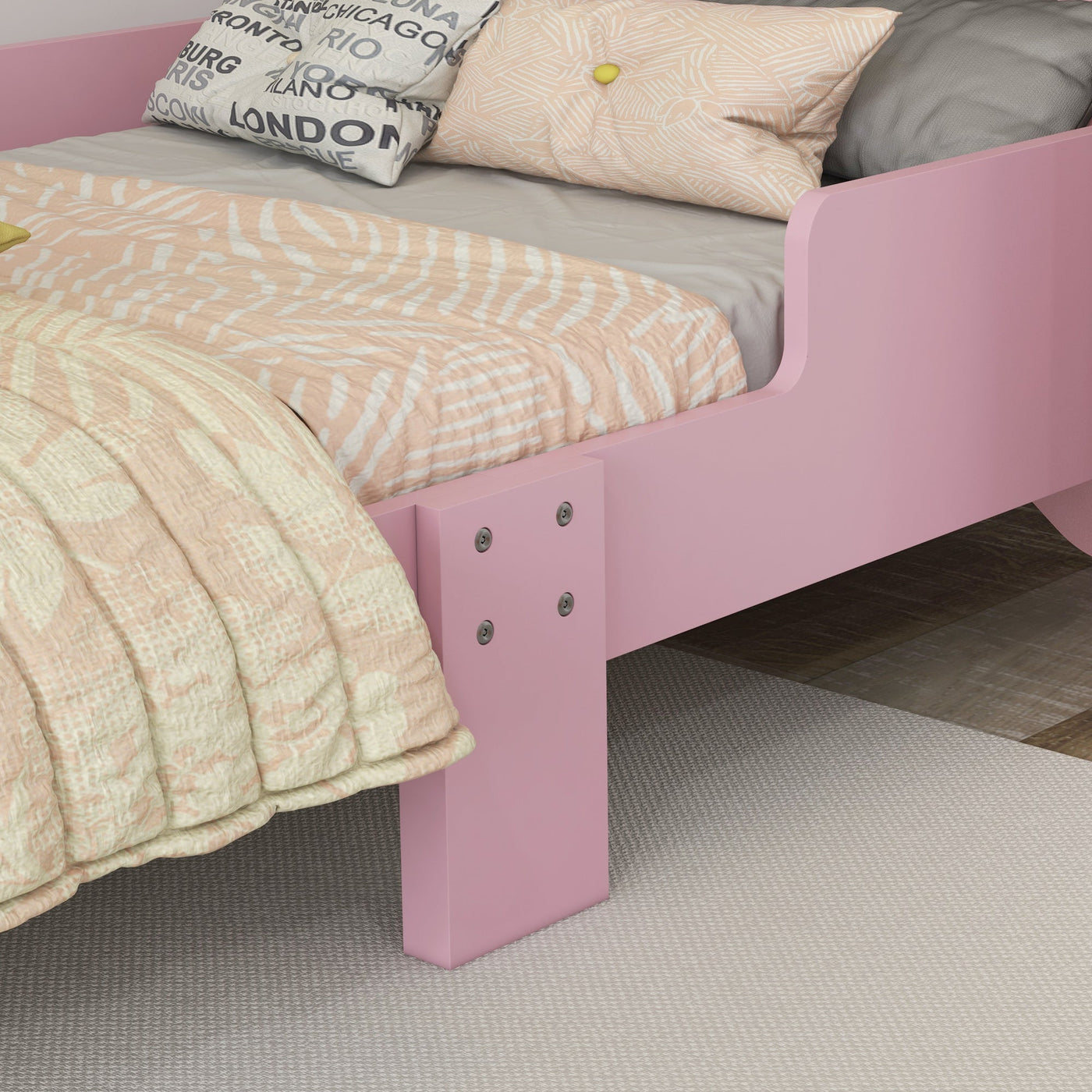 Transform your child's bedroom into a vibrant, uplifting space with the ZONEKIZ cat-themed princess bed. Designed with safety in mind, this bed features a low height for easy access and side rails to prevent falls. Made from strong MDF and multi-layer board, it offers strength and safety for active toddlers. The compact size allows for easy placement in any home. This bed is a great choice for kids, providing a seamless and enjoyable transition to independent sleeping.