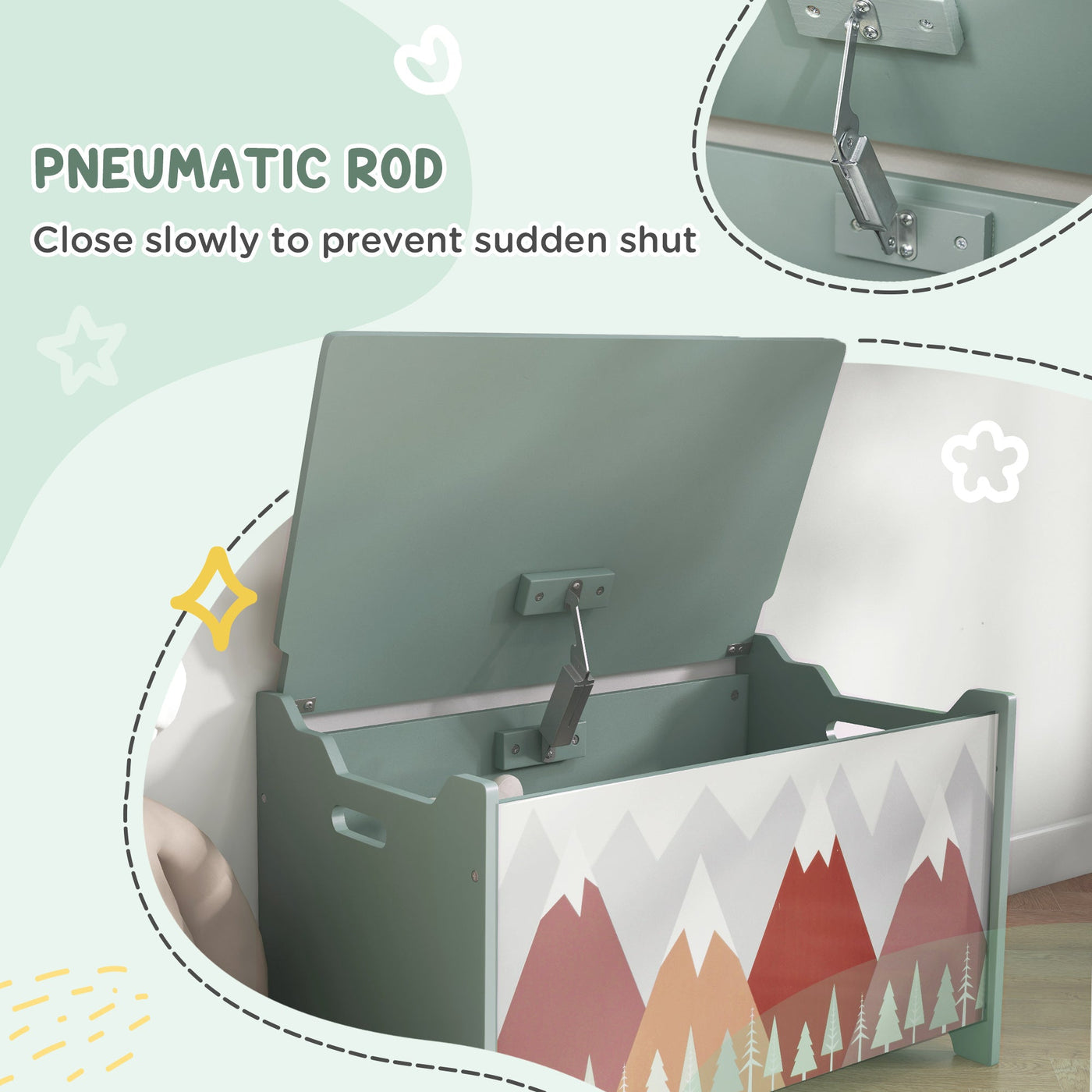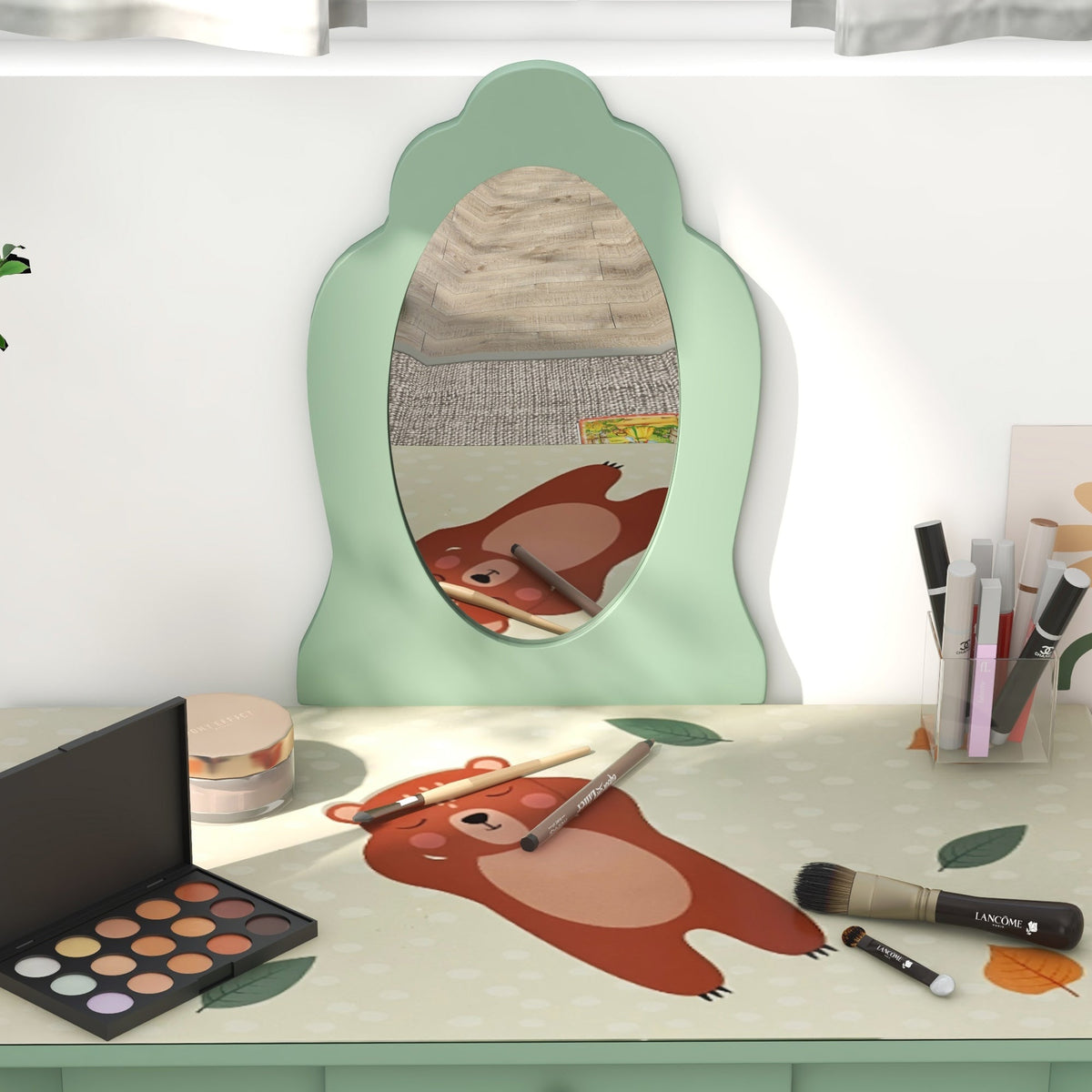 ZONEKIZ Kids Bedroom Furniture Set Includes Bed Frame, Kids Toy Chest, Dressing Table with Mirror and Stoolfor Ages 3-6 Years, Green - Green