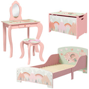 ZONEKIZ Kids Bedroom Furniture Set Includes Bed Frame, Toy Chest, Dressing Table for Ages 3-6 Years, Pink - Pink